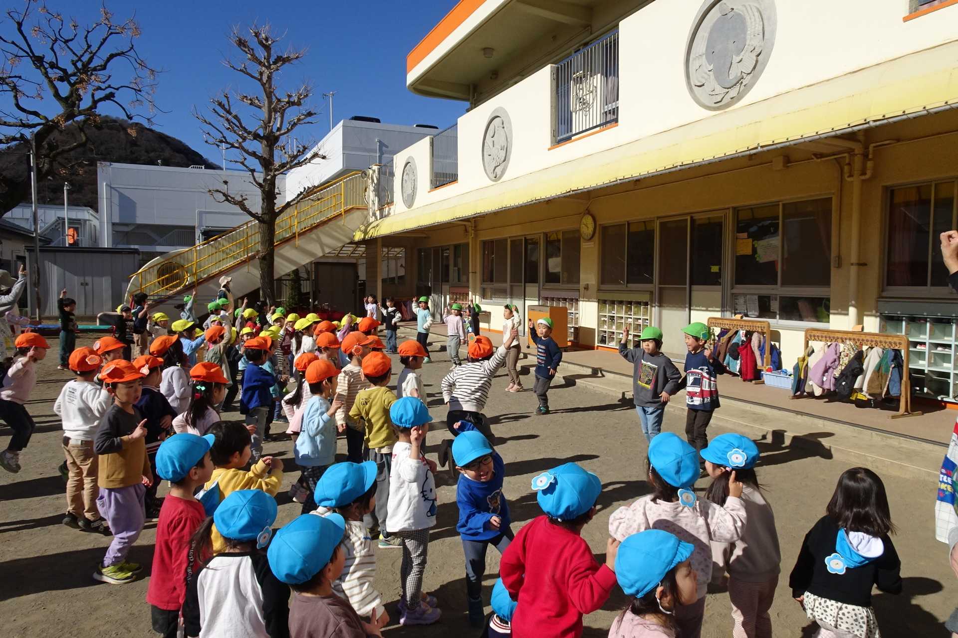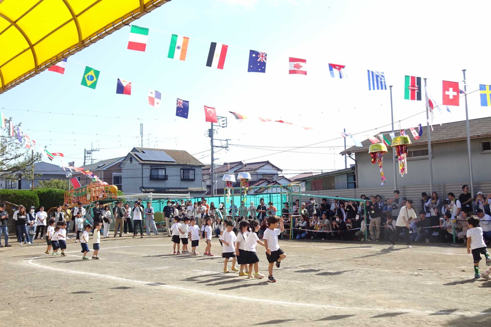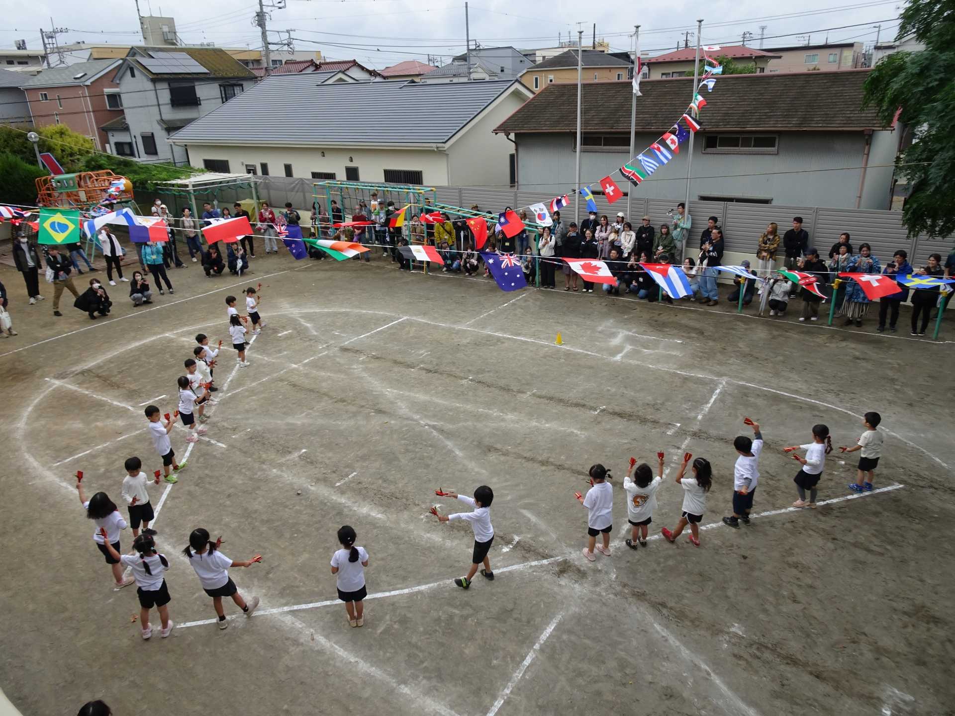 ひまわり組のダンスは、園庭でのびのびと披露することができ、