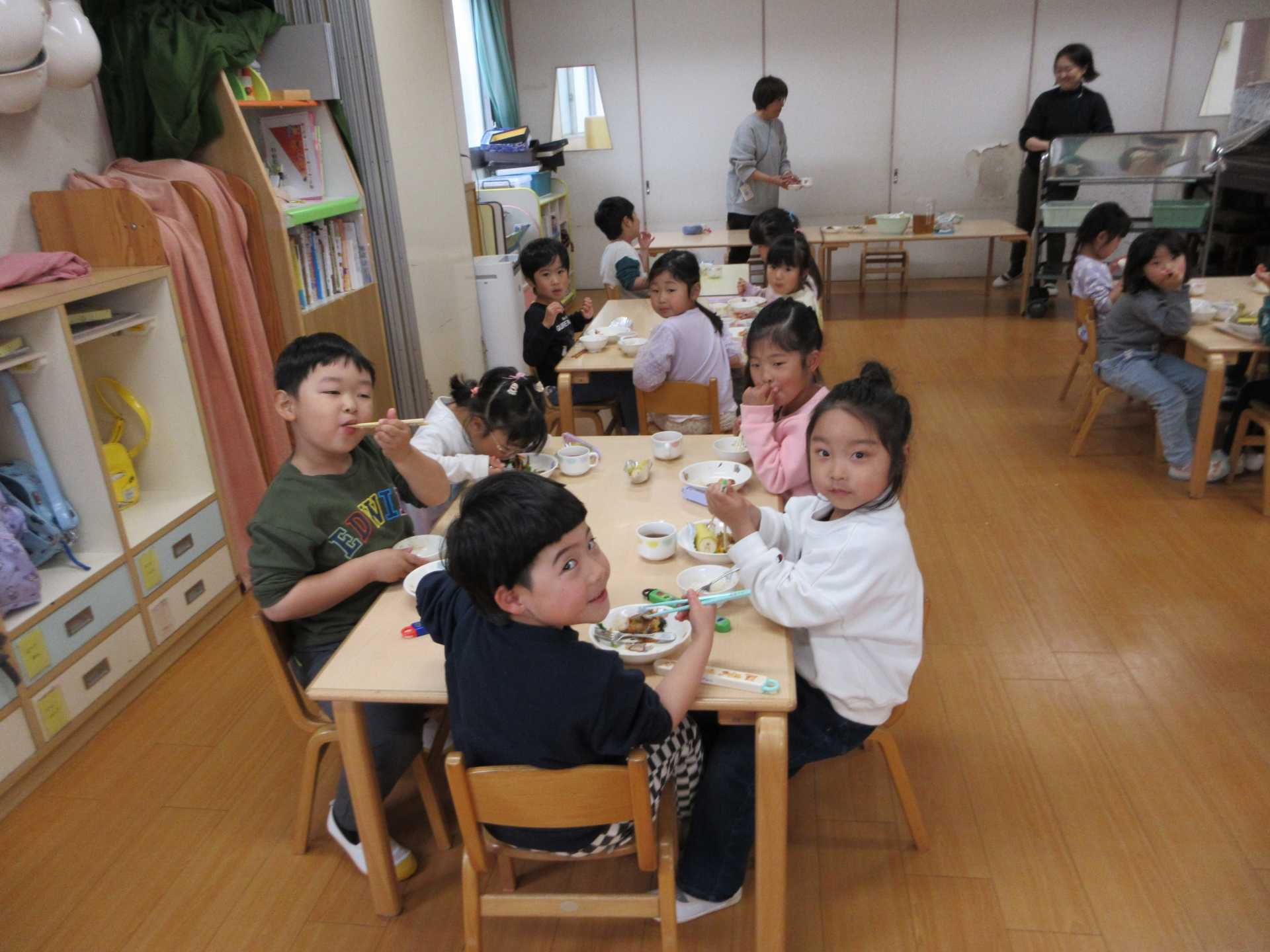 年に3回程度、親子で保育園の給食を楽しむことができる「会食会」を行っています。1回2組限定の予約制です。ぜひ参加してみてください。