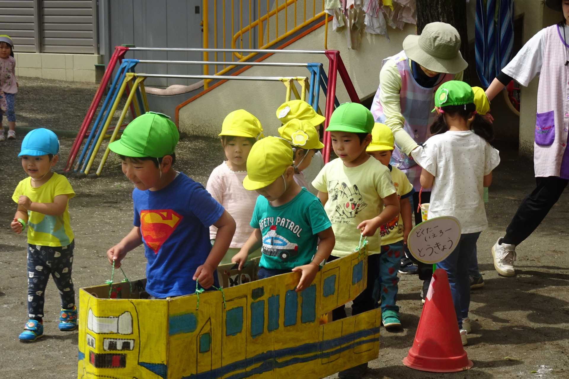 ・登園 ・朝の準備 ・合同保育 ・クラス毎に集まり、朝の体操 ・クラス毎の保育(年間、月案、日案による) ・給食 ・午睡 ・おやつ ・自由遊び ・おかえり ・合同保育 |