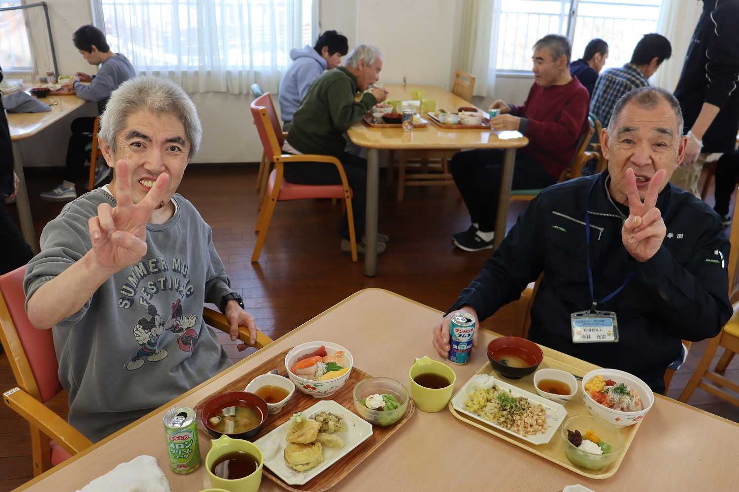 令和8年1月19日(月)、昼の時間を利用して、あさひホームの新年会を行いました。自治会長の掛け声による乾杯の後、昼食をいただきました。メニューは海鮮丼や天ぷらなど、豪華な内容で、参加者一同、満腹になるまで楽しみました。一年の門出を祝うにふさわしい、良い一日となりました。