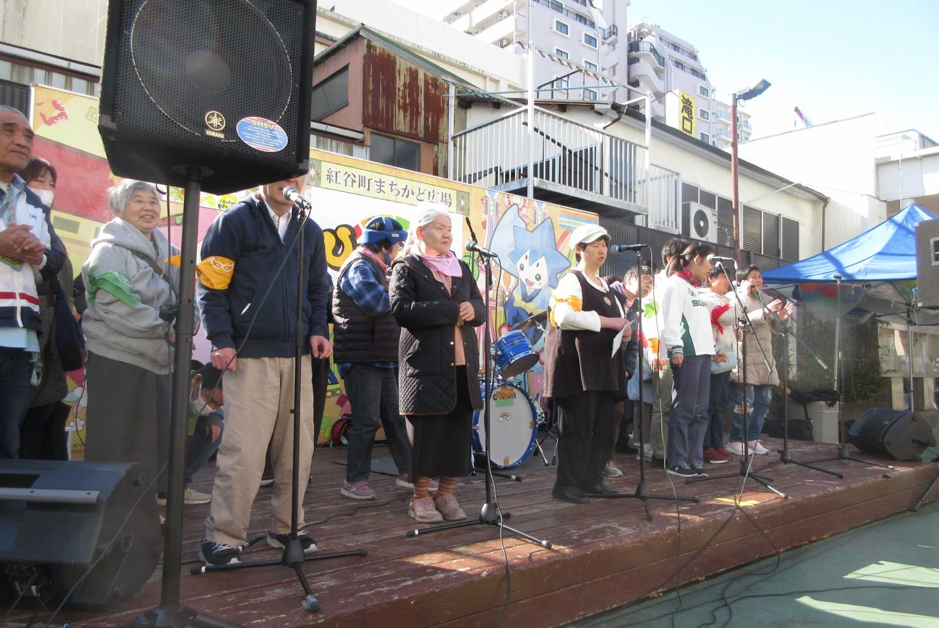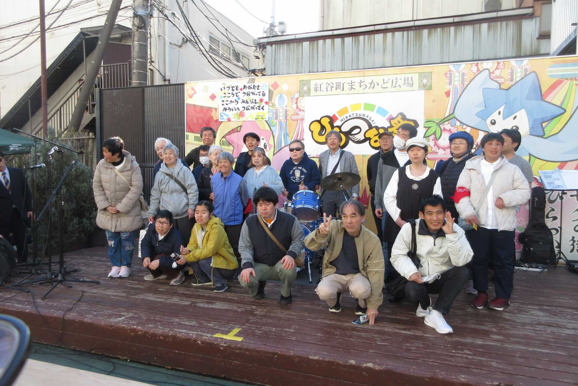 とびっきりレインボーズは、例年通り、まちかど広場ステージで演奏しました。オリジナル防災ソング「ひらつなロックンロール」では非常持ち出し袋に入れる備蓄品30点を歌の中で紹介して、たいへん好評でした。