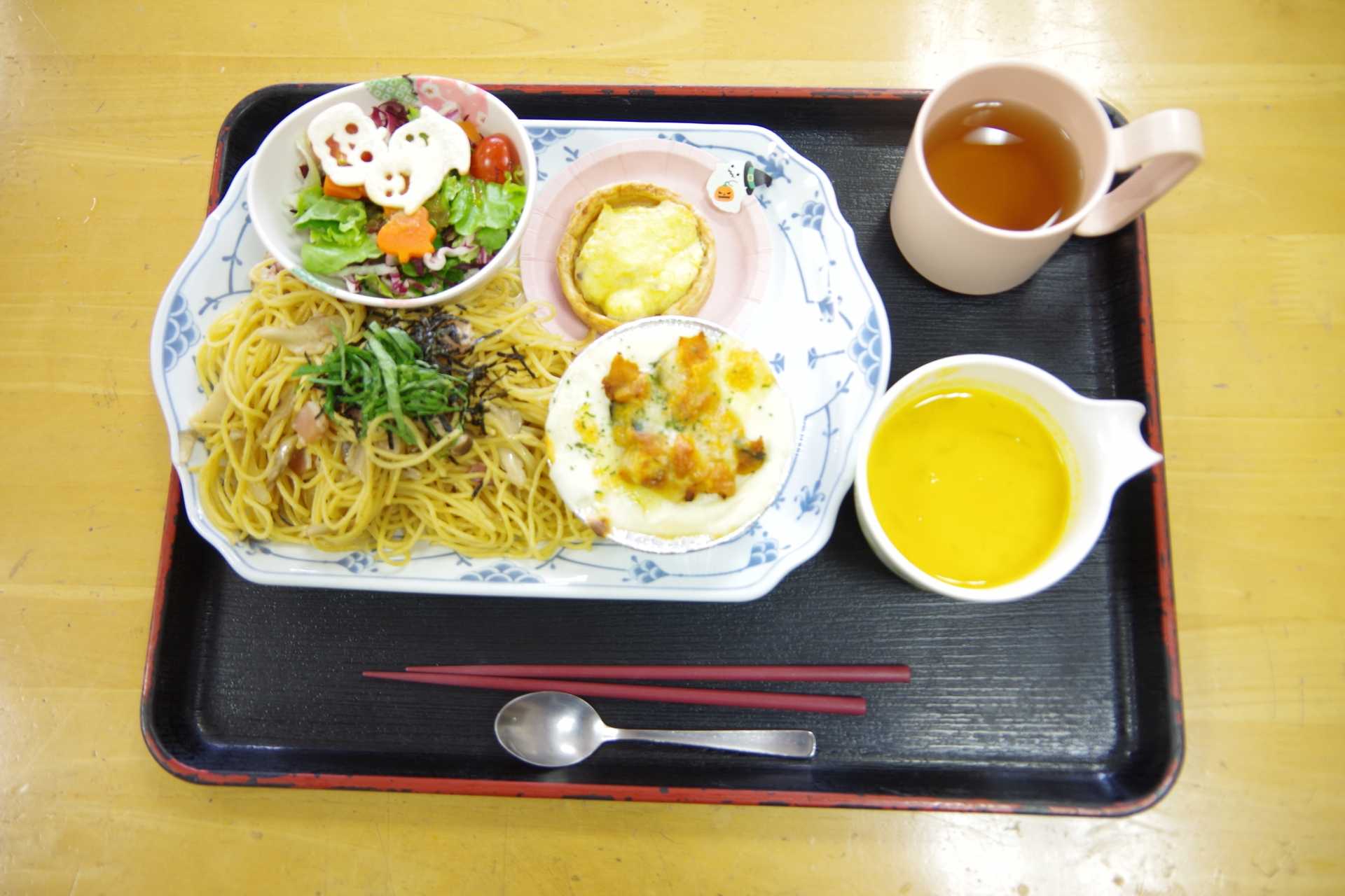今年もハロウィンの季節になりました!万田ホームではユニークなオバケ?たちが園内を闊歩し、ウォークラリーをおこないました。ウォークラリーを終えると「トリックオアトリート!」の掛け声でお菓子すくいをおこないました。昼食には甘いカボチャをふんだんに使った料理が並び、午後はロールケーキに皆さん思い思いのトッピングでデコレーションして喫食しました。とても楽しいハロウィンパーティーとなりました。