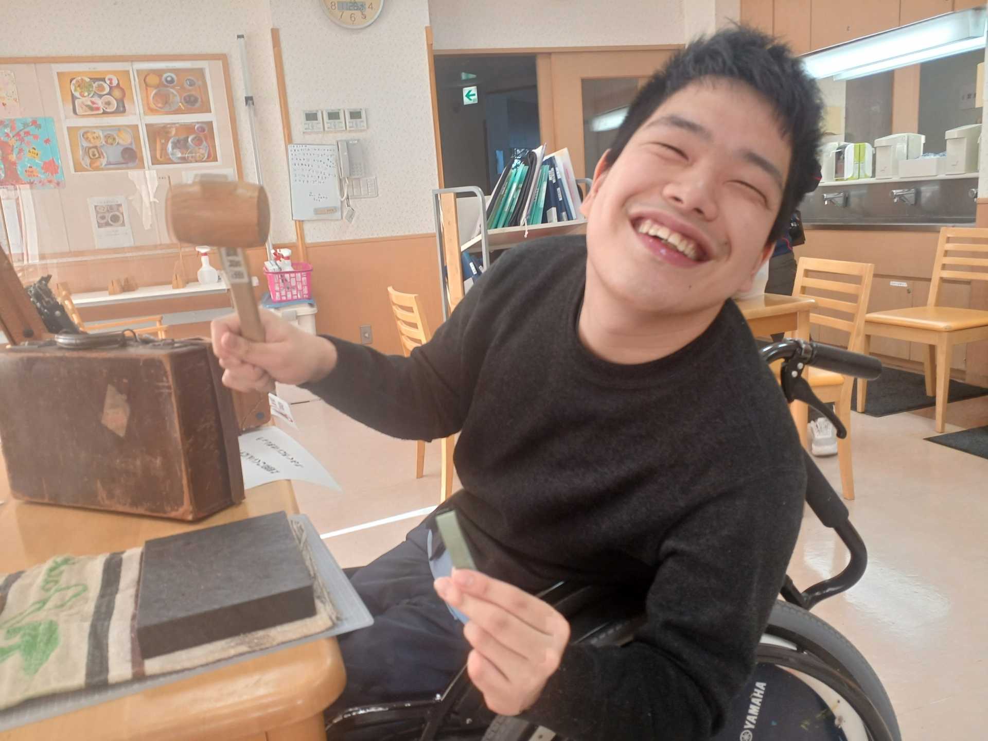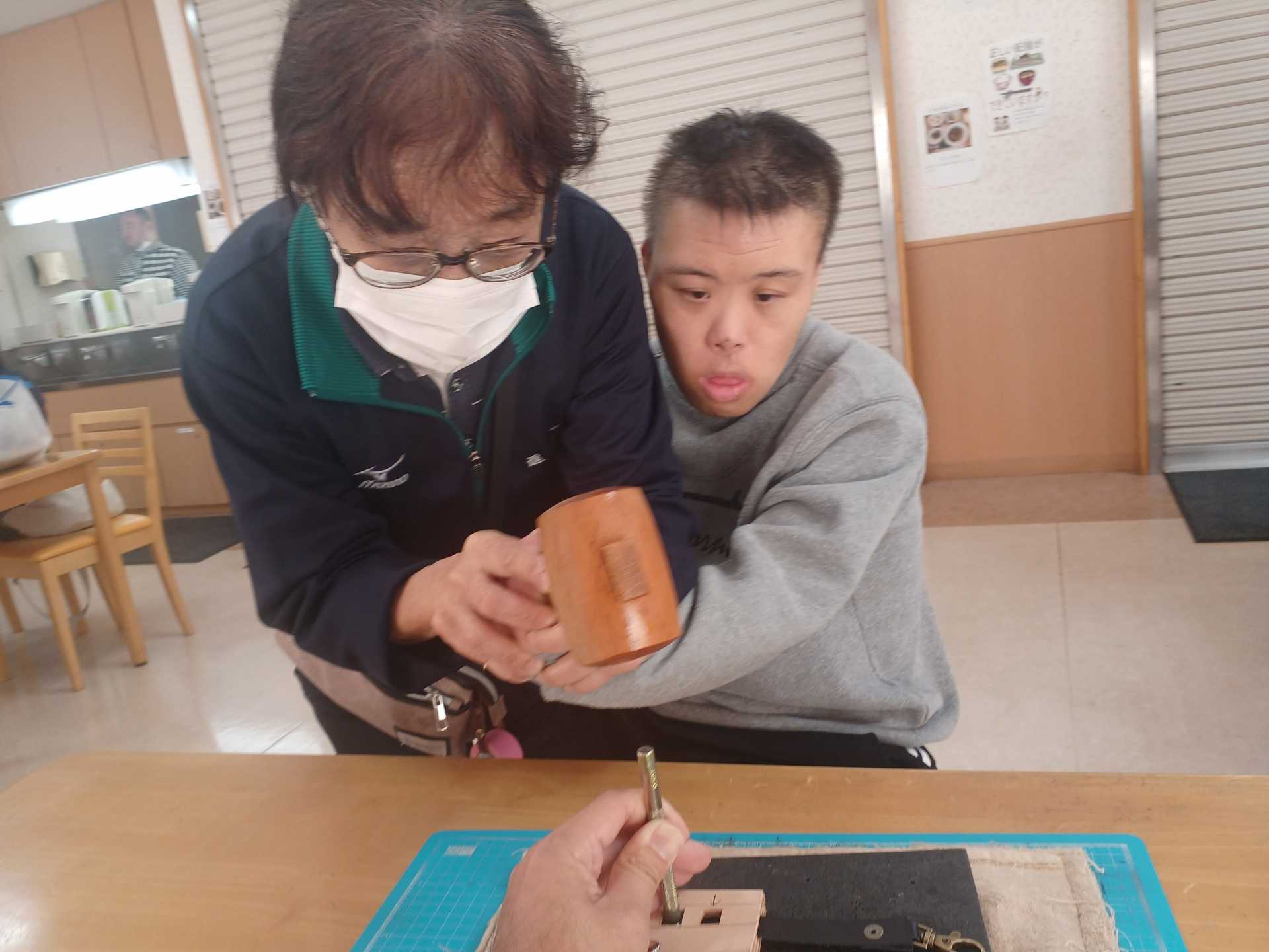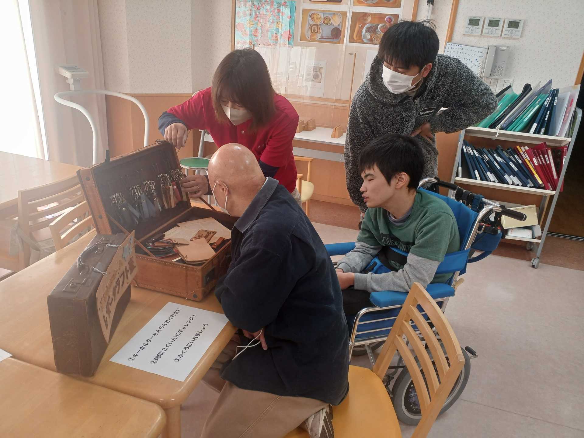 万田ホームの自主生産品とアート作品を展示した万田ホームアート展を開催しました。それぞれの個性が光る作品たちを見て「芸術の秋」を堪能しました。レザー班が企画するレザークラフトワークショップでは、利用者の皆さんが好きな色のキーホルダーをチョイスしてイニシャルの刻印を施しました。昼食にはカレーパーティーと題して事前のアンケートをもとに3種類のトッピングをのせた美味しいカレーに舌鼓を打ちました。「食欲の秋」も満喫し、楽しいイベントとなりました。