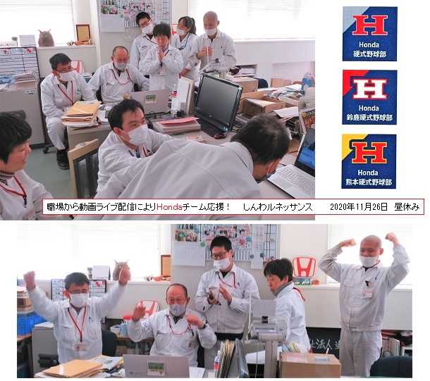 東京ドームで、Honda社員の皆様やファンの方々と一体となって応援歌を謳い上げることは出来ませんが、チームHondaの一員に加えて頂いている進和学園/小田原支援センター及び研進メンバー一同、Honda各チームの出場を祝しご健闘を心より祈念申し上げます。職場から、自宅から精一杯の声援を送りたいと思います。・・・「レッツゴー!Honda!」「ファイト!Honda!」、そして「コロナに負けるな!」