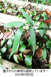 また、プランターを利用して種子からの栽培も粘り強く続けていますが、右の写真のように漸く茎を伸ばして生長したものも出て来ました。