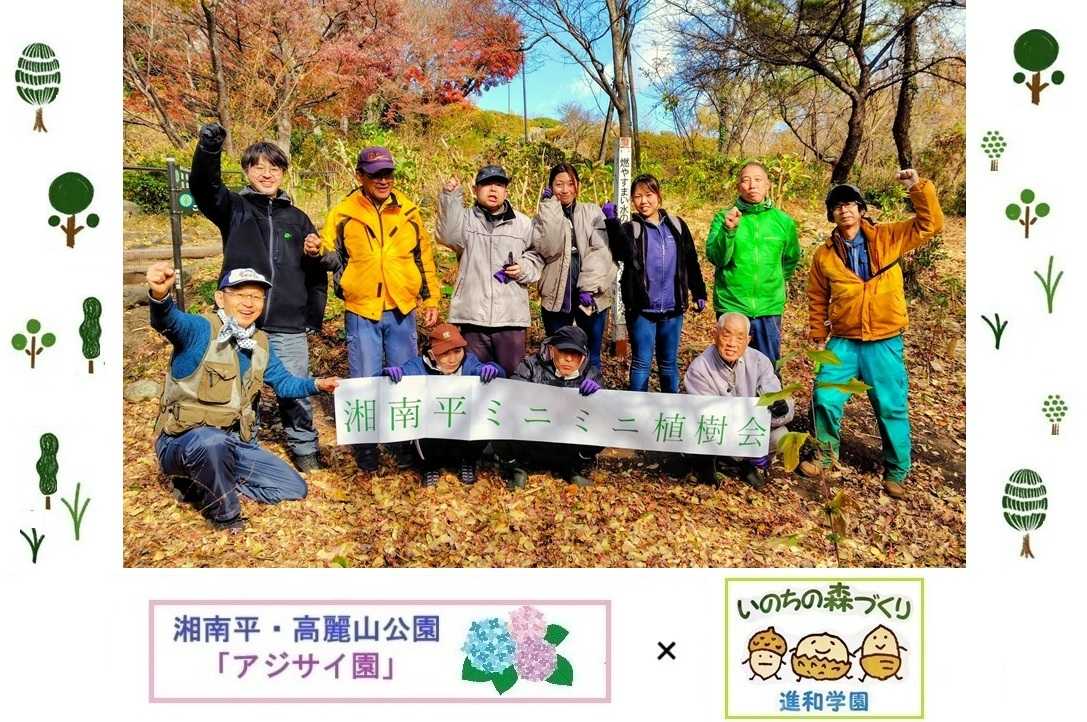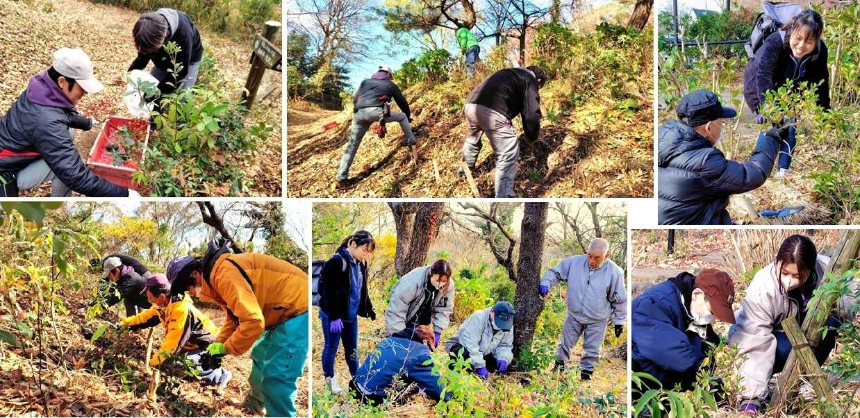2025年12月12日(金)、湘南平・高麗山公園(神奈川県平塚市/大磯町)の「アジサイ園」における植栽保全作業を実施しました。先週に続いて、アジサイの剪定と合わせ、「いのちの森づくり」プロジェクトの一環として、空いたスペースに進和学園が栽培した自然種の苗木9種類60本を植えました。