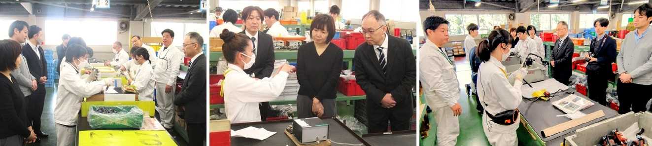 ホンダ車部品組立の他、事業の多角化の取り組みとして、食品加工、中古エアバッグのリユース、水道メーターのリサイクル、ペット・グッズ等に加え、2年目を迎えた製パン事業(湘南こむぎ工房)の作業現場をご視察頂きました。また、治工具開発室及び工場周囲に植樹して19年が経過した「いのちの森づくり」の状況もご覧頂きました。昼食会を挟んで歓談、交流の輪が広がりました。年末のご多忙のところ、時間を割いてご来訪頂いた皆様に、重ねて感謝申し上げます。