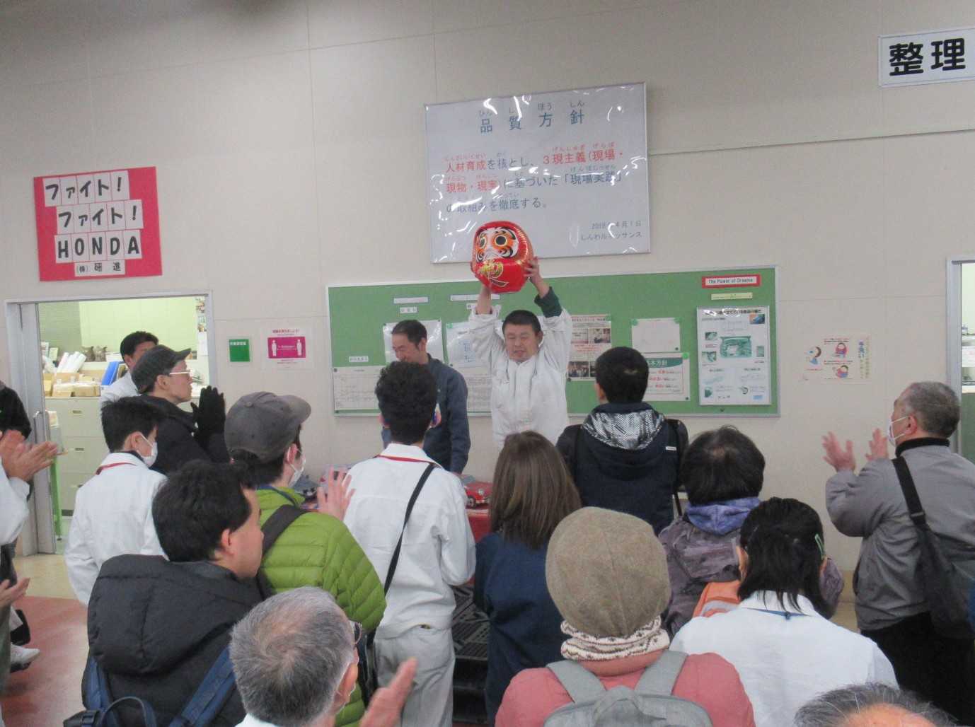 ダルマの目入れ式では皆さんお一人お一人が目標に向かってしっかり頑張るといった気持ちを込めて目入れしました。