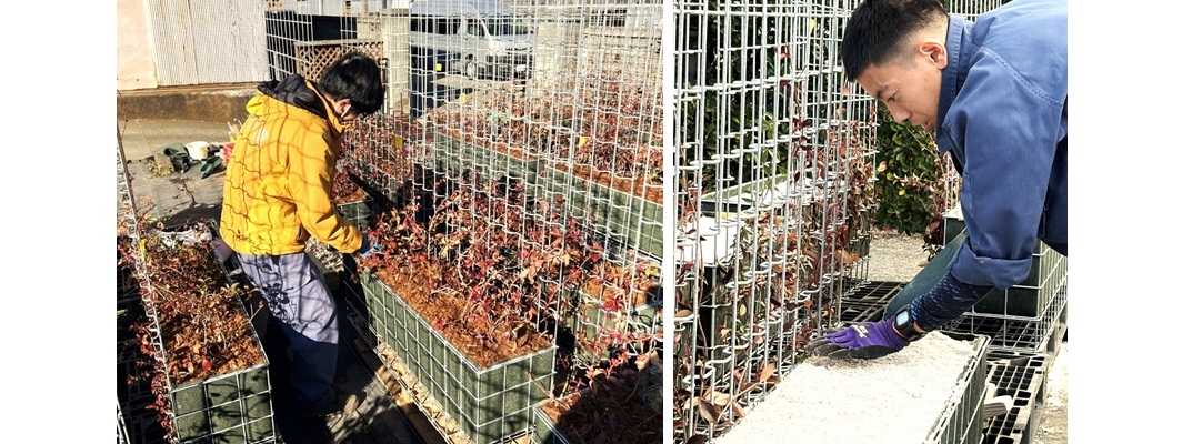この「里山ユニット」は、都市緑化及び環境保全を広く手掛ける株式会社ゴバイミドリ様が提供されていますが、2019年より、進和学園(どんぐりグループ)& 研進がその製作を請け負わせて頂いています。同社社長の宮田生美様はじめスタッフの皆様の親身なるご指導の下に、働き甲斐を実感しながら「里山ユニット」の仕事に励んでいます。