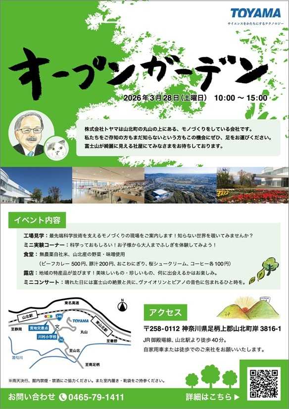 企業と地域住民との交流は、地元の活性化やコミュニティ形成において益々重要となるものと思います。トヤマ様が、地域に開かれた催事を企画・実施されていることに、深く敬意を表する次第です。